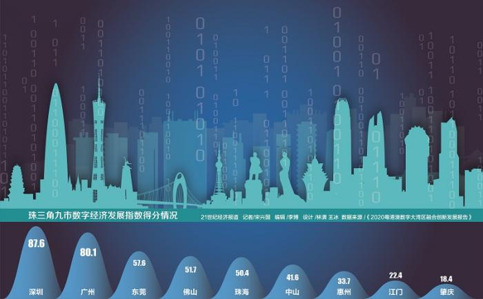 3月5日,21世纪经济研究院与阿里研究院共同发布《2020粤港澳数字大湾区融合创新发展报告》,基于自身数据库以及官方数据,全面分析粤港澳大湾区11个城市的数字经济发展水平,开创性地进行定量分析。