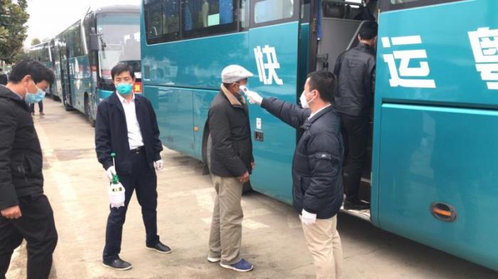 3月4日下午2时,载着96名河南老乡的4辆返岗直通粤运大巴到达增城区的广州江河幕墙公司,刘克明等8名驾驶员并未因此闲下来,主动协助当地防疫部门对每位务工人员进行一系列防疫检查,并通过“穗康”小程序登记身体健康状况等相关信息。