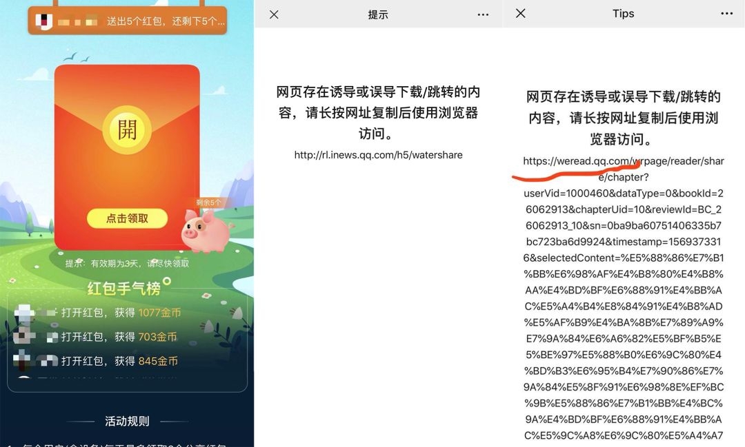 图为腾讯新闻极速版及微信读书外链此前被处理情形