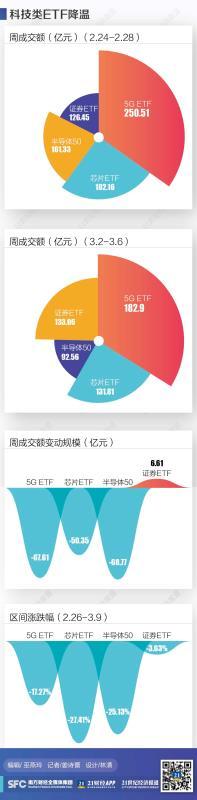 就在科技类ETF成交走低的同时,券商ETF、上证50ETF则逐步被资金追捧。