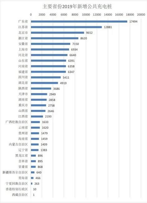 各地增量方面,2019全年,全国公共充电桩共增加12.89万台。其中,广东、江苏增量最为突出,分别增加了17494台和12881台,占全国新增占比均超过10%。