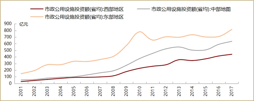 图2:中西部市政基础设施投资空间仍较大