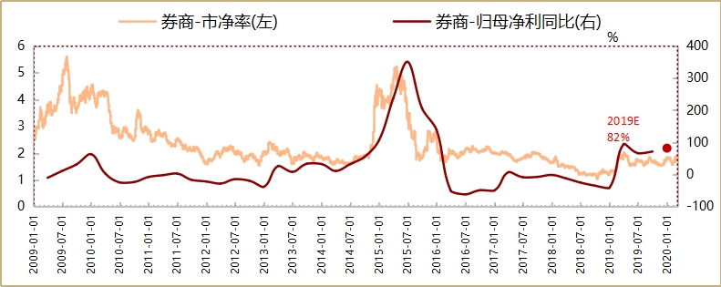 年初以来,A股市场成交额攀升至2016年来的新高水平,市场活跃度和韧性十足。二季度随着疫情被控和基建发力,经济增长将出现反弹和复苏,股市有望进一步震荡上行。因此,券商业绩有望在去年的基础上保持上行周期,而券商的估值水平仍然处于多年来的较低水平上,戴维斯双击有望产生。