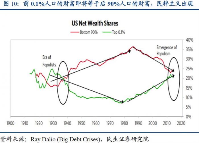 美国一些民粹主义或将愈演愈烈,社会矛盾进一步激化。按照达里奥的观点,贫富差距拉大使得民粹主义可能在美国爆发,加剧美国社会的不稳定性。