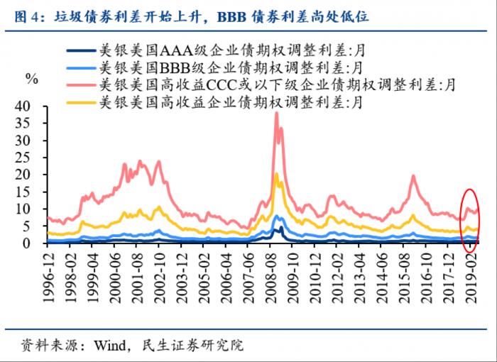 除了最低评级的垃圾债以外,各级利差也未有明显上升,反映整体信用风险尚处于低位。