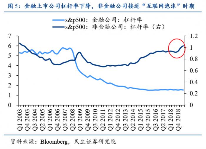 金融上市公司杠杆率低位运行,非金融上市公司杠杆率突破上轮峰值。受金融危机和监管趋严的影响,金融上市公司先是在2008年经历了大规模去杠杆,然后继续压缩自身的杠杆率。相反,非金融上市公司的杠杆率波动在金融危机中相对较低,2009年的杠杆率峰值低于互联网泡沫时期的水平。