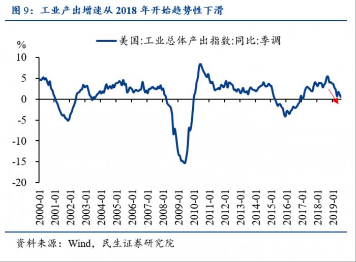 虽然制造业在美国GDP中占比仅在12%左右,但是一旦制造业衰退加剧(目前,已经连续两季度环比负增长,进入“技术性”衰退),必将对其他部门形成显著负面影响,失业率也会随之上升。