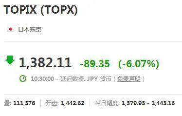 日本东证指数跌6.07%,率先步入了技术性熊市区间。
