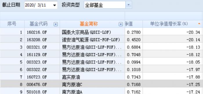 易方达原油、嘉实原油、南方原油则是跌幅超过17%。