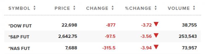 讲话结束后,金融市场并“不买账”,美股期指跌幅扩大,截至21世纪经济报道记者发稿,道琼斯指数期货跌近900点,跌幅3.72%,标普500指数期货跌3.56%,纳斯达克指数期货跌3.94%。