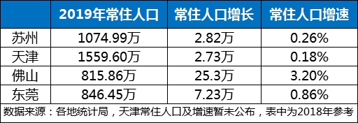 佛山、东莞的人口总量,比起苏州和天津,显然还有比较大的增长空间。