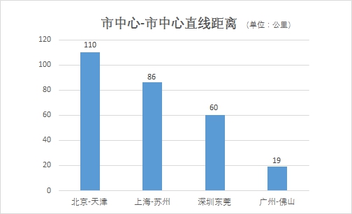 北京和天津之间,距离达到了110公里,这个距离差不多是广深之间的路程了。