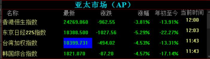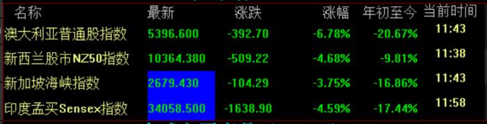疫情进一步加重,亚洲时间段,亚太市场相继上演“萝卜蹲”,日经225指数跌超5%,收盘下跌4.41%;韩国股市大跌逾4%;澳大利亚普通指数跌幅则是超过7%;印度孟买sensex指数的跌幅达到7.04%; 巴西股市再次暴跌超过10%,一度触发熔断机制交易暂停,最终收于85171.13点,下跌7.64%。
