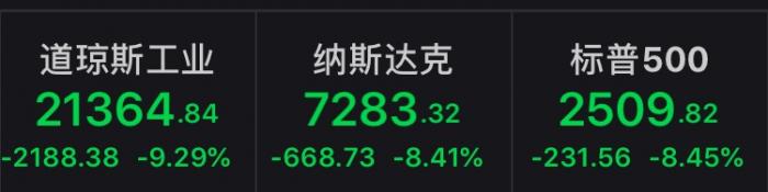 标普500指数恢复交易后,美股加速下跌,纳指、标普500指数跌逾8%,道指跌逾9%。