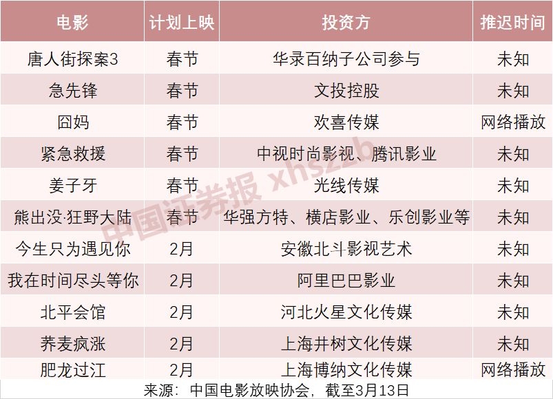 截至3月13日,据中国证券报记者不完全统计,中国以外的地区撤档影片的名单包括: