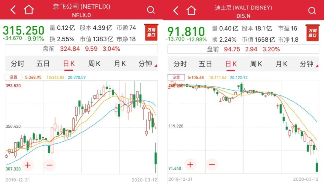 受疫情的持续影响,多家好莱坞公司的股价从上周开始大跌。