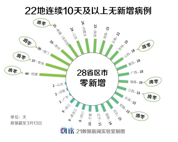 据21数据新闻实验室统计,截至3月13日24时,全国(不含港澳台,下同)新增确诊病例11例,湖北新增确诊病例4例(武汉4例),连续3天保持个位数;湖北除武汉外连续9天0新增。