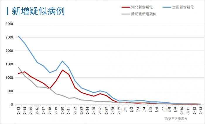 截至3月13日24时,全国现有疑似病例降至115例,新增疑似病例17例,连续8天保持在两位数。湖北现有疑似病例34例(武汉30例),持续加速下探;新增疑似病例0例,实现首次零增长。