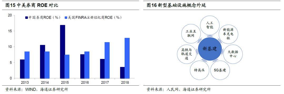 另一个主线是券商,在金融供给侧改革深入推进背景下,未来我国直接融资占比将提升,2月14日证监会发布了再融资新规,这将提高券商的杠杆倍数、从而助推业绩改善,可比口径下截止19Q3年A股券商ROE(TTM)仅6.2%,而18年美股券商为12.7%,随着杠杆率提高券商有望提高自身盈利水平。