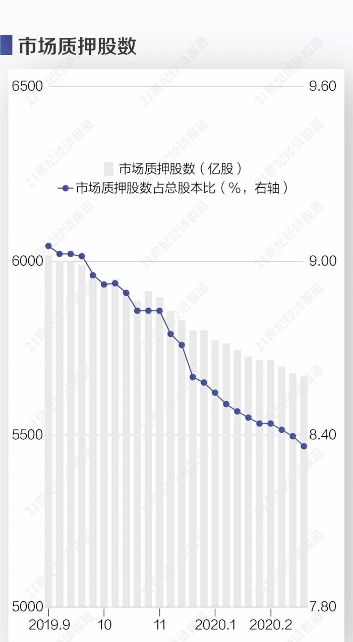 研究团队统计数据显示,截至3月6日,全市场质押股数5669.02亿股,市场质押股数占总股本8.35%,较2019年9月20日的9.05%减少0.7个百分点,较2019年12月27日的8.58%减少0.23个百分点。