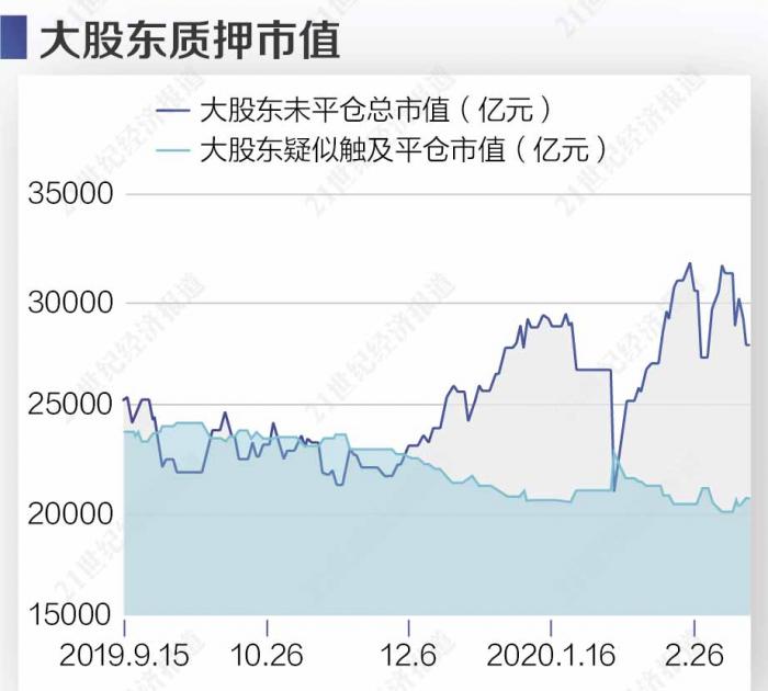 2018年底,大股东疑似触及平仓市值则约为3万亿元。