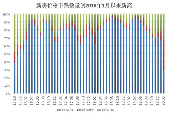 数据显示,2月,70个大中城市中有21个城市新房价格环比上涨,23个环比下降。另外持平的则有26个城市,其中,武汉、石家庄和太原等12个城市受疫情影响无成交。