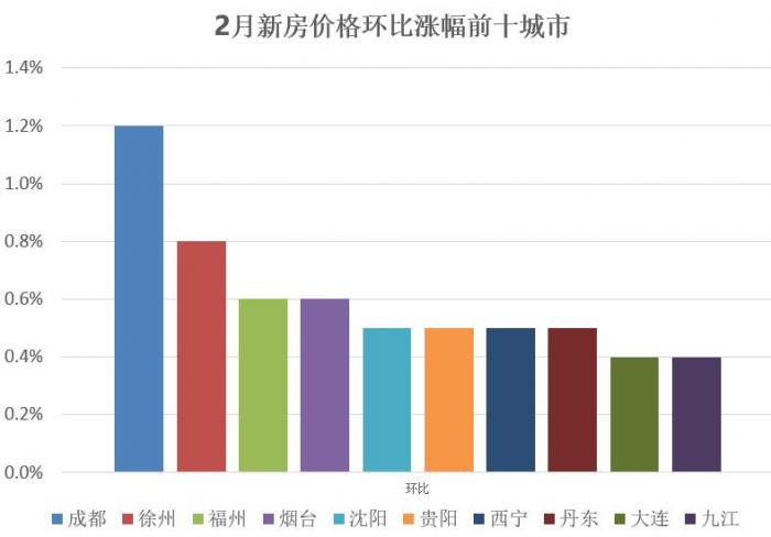 易居研究院智库中心研究总监严跃进认为,从2月数据来看,成都属于上涨态势最明显的城市。一方面与成都本身的潜在购房需求较大有关,另一方面,成都近期有新的规划推出,客观上容易带动房价的上涨。