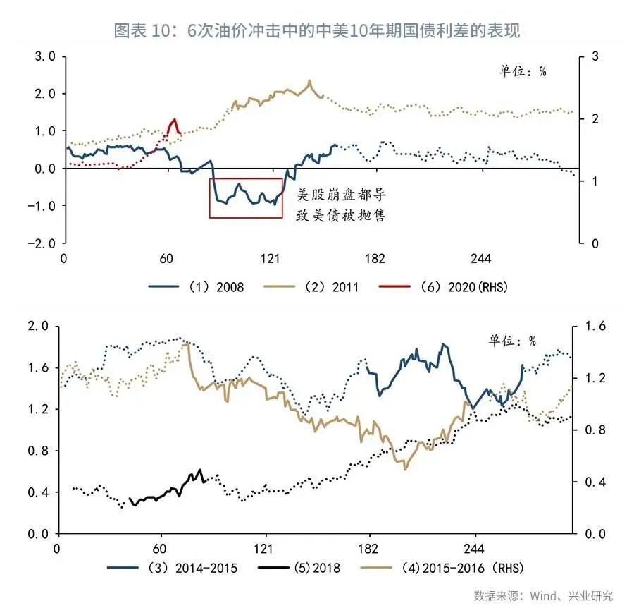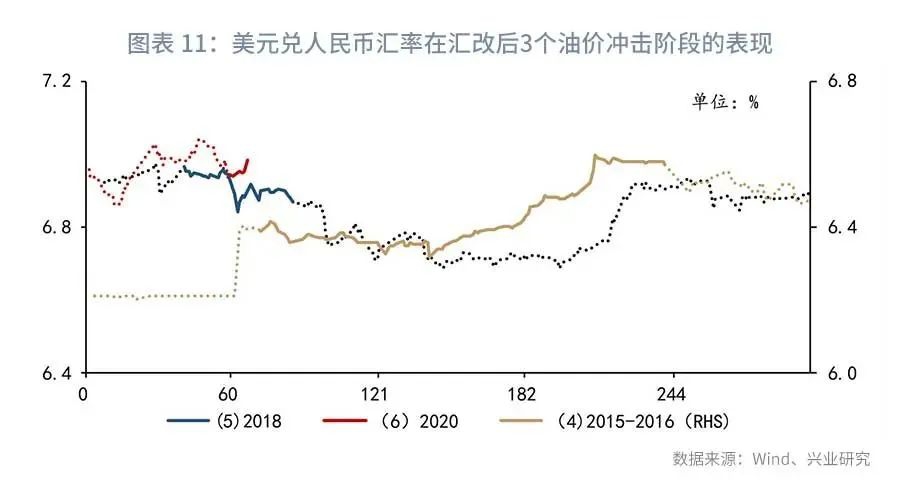 从中美利差来看,除2015年中美货币政策出现明显分外(2015年中国连续下调存款准备金率和逆回购利率,而美联储停止QE后重启加息的预期升温),2008年第四季度美股崩盘导致美债被抛售,使得中美利差出现局部收敛外,其余阶段中美利差均趋于扩大,不过当油价波动率高峰过去后,中美利差又会逐步回落。值得注意的是本周下半周,市场也出现了类似2008年美股大跌、国债流动性下降的情况,中美国债收益率小幅收敛。另外值得注意的是汇率方面的变动,2015年811汇改后,人民币汇率市场化程度提高,中美利差会对汇率的影响越来越大,2015年在油价波动率期间央行连续下调逆回购利率,中美利差显著收敛,人民币贬值;而2018年第四季度央行并未降息,而是采取了降准的措施对冲经济和市场压力,人民币稳中有升(见图表11)。