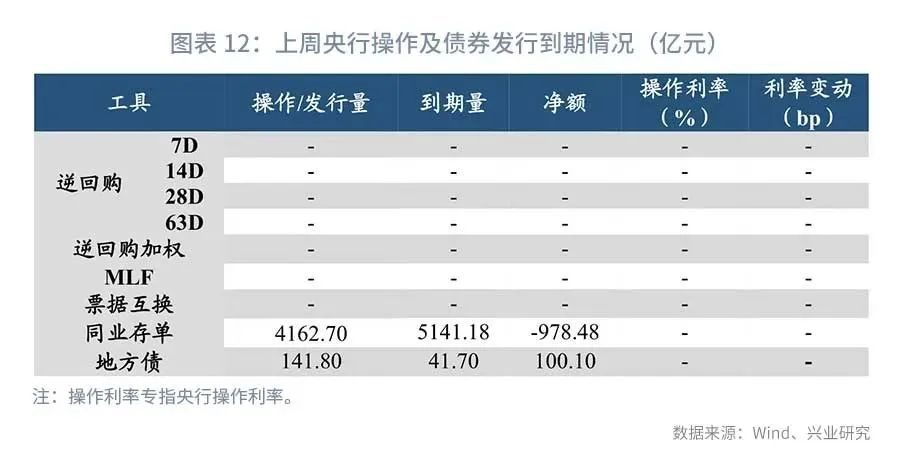 上周央行无公开市场操作(如图表12);截止上周末,所有逆回购均已到期(如图表13)。