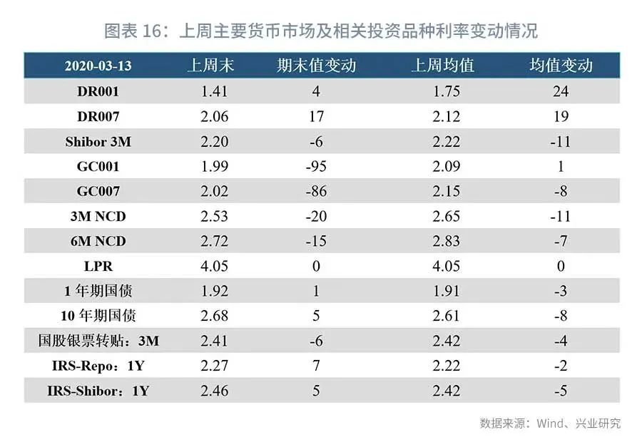 关注美联储议息会议。上周银行间市场流动性继续保持充裕,不过由于受全球市场波动影响,DR001,DR007等短端利率反弹后回落,整体中枢上移,但长端资金利率继续缓慢下行。本周美联储将召开议息会议,美联储将采取进一步宽松的措施来应对当前疫情加速扩散和金融市场的紊乱,且不排除继续降息的可能,这或会给资金利率带来下行压力。
