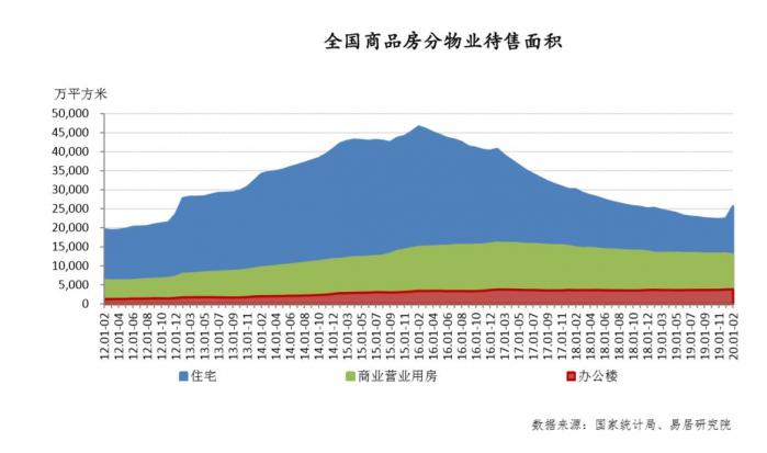 体现在宏观数据上,国家统计局数据显示,1—2月份,商品房销售面积8475万平方米,同比下降39.9%。商品房销售额8203亿元,下降35.9%。2月末,商品房待售面积53004万平方米,比2019年末增加3184万平方米。