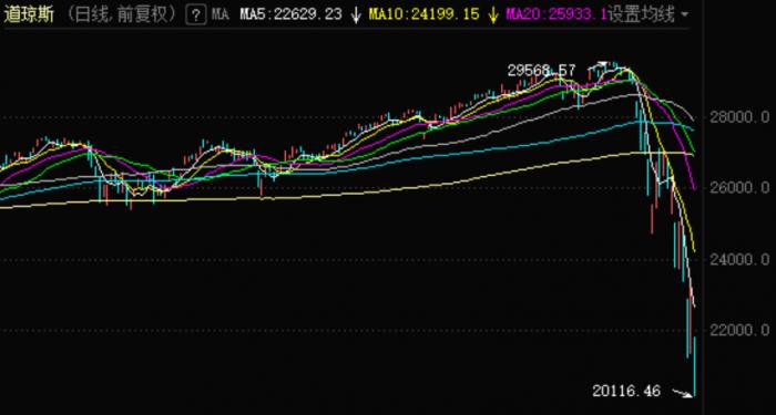 盘面上,道指成分股跌势惨重,波音暴跌23.85%,家得宝跌19.79%,英特尔跌18.04%,美国联合健康跌17.28%,雪佛龙跌16.45%,麦当劳跌15.88%,摩根大通跌14.96%,陶氏化学跌14.40%,维萨卡跌14.63%,美国运通跌13.79%。