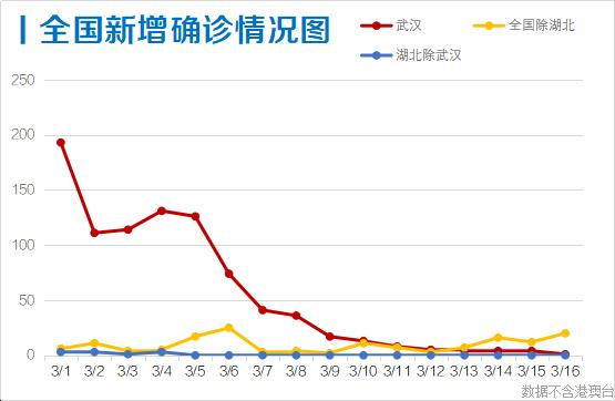 据21数据新闻实验室统计,截至3月16日24时,全国(不含港澳台,下同)新增确诊病例21例,湖北新增确诊病例1例(武汉1例),连续6天保持个位数;湖北除武汉外连续12天0新增。