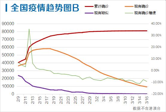 据国家卫健委关于新型冠状病毒肺炎通报的最新数据,截至3月16日24时,31个省(自治区、直辖市)和新疆生产建设兵团新增确诊病21例(累计80881例),现有确诊病例8976例,新增疑似病例45例(现有128例),重症病例减少202例(现有2830例),新增治愈出院病例930例(累计68679例),新增死亡病例13例(累计3226例)。