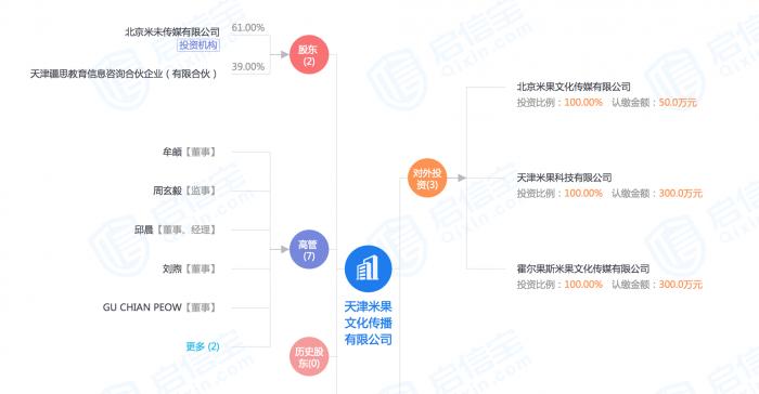 值得注意的是,邱晨担任米果文化经理、董事,其隶属于北京米未传媒有限公司(下称“米未传媒”)。米未传媒持有米果文化61%的股份,米未传媒法人为马东。稍早,有网友发现邱晨将自己的介绍中的米未公司相关职位给删除了,疑似是不想因个人事件影响公司。