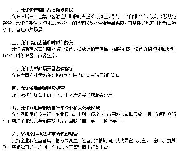 (成都城管委出台的“五允许一坚持”措施。)