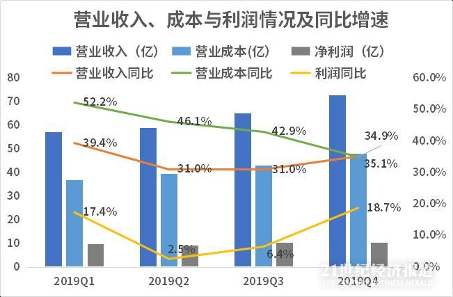 另一个值得关注的地方是,公司去年四季度营业收入同比增速为35.1%,超越了营业成本的增速。