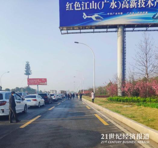 3月18日早上8点,沉寂了50多天的县级市湖北随州广水市开始大堵车,出城高速路口排起了长队。
