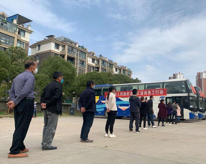 事实上,3月14日到18日之间,湖北潜江、黄冈、咸宁等多个地市已经输送了多批务工人员返岗。车站工作人员也会核对个人信息,检查防护情况和测量体温,保证务工人员健康安心复岗。湖北京山一位镇长告诉21世纪经济报道记者,他们已经送了几批务工人员返回广东。