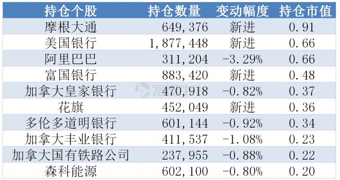 从持仓个股角度看,桥水前六大持仓个股中有5家银行,摩根大通、美国银行、富国银行、花旗皆为四季度新建仓股票,加拿大皇家银行仅小幅变化。