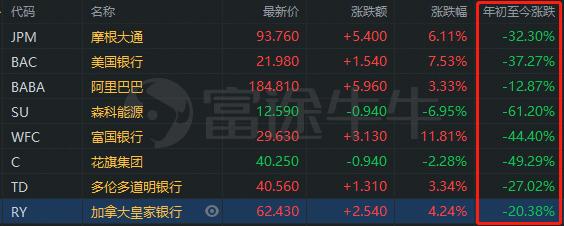 在美股表现不佳的情况下,从富途证券行情可以看出,桥水基金前十大重仓个股表现同样相当惨烈,摩根大通今年大跌32%,美国银行大跌37.27%,阿里巴巴仅跌12.87%,森科能源大跌超60%......