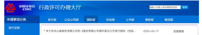 3月17日晚间,证监会官网显示,证监会国际部正式接收了农夫山泉股份有限公司提交的《股份有限公司境外首次公开发行股份(包括普通股、优先股等各类股票及股票的派生形式)审批》材料。