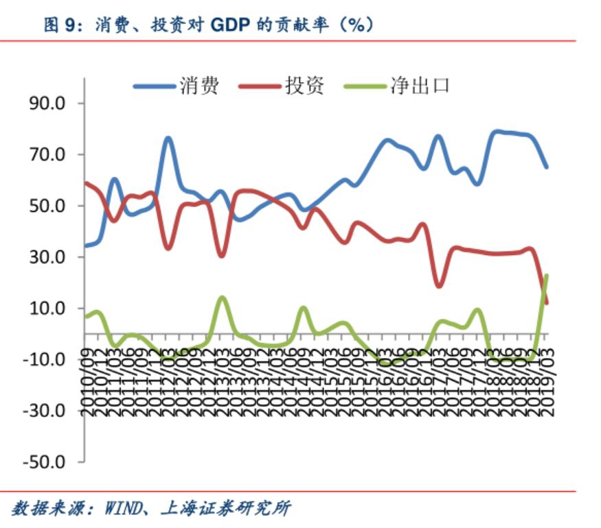 从长期看,当前中国正处于从投资驱动型经济、出口带动型经济向消费拉动型经济转变,近些年,投资和出口对经济的贡献率都有所下降,消费对经济贡献率逐年上升。
