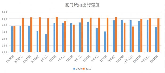 3月10日,深圳城内出行强度3.83超去年同期3.64;3月11日,再以3.83超去年同期3.30。2月24日起,除特定线路外,深圳所有公交线路恢复正常运营;并且可通过微信小程序,查询部分地铁和公交车厢拥挤程度及到站时间。