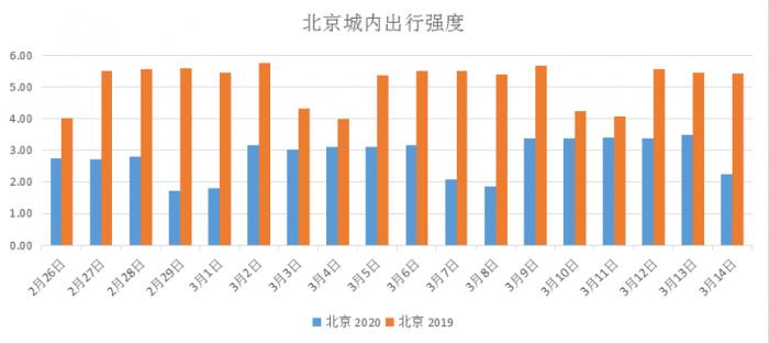 此外,北京、天津等其他样本城市城内出行强度整体呈上涨趋势,但未超过去年同期水平,仍处于恢复期。