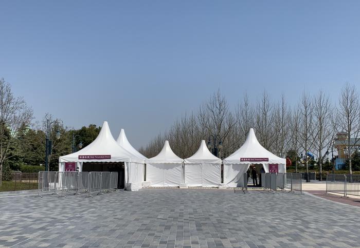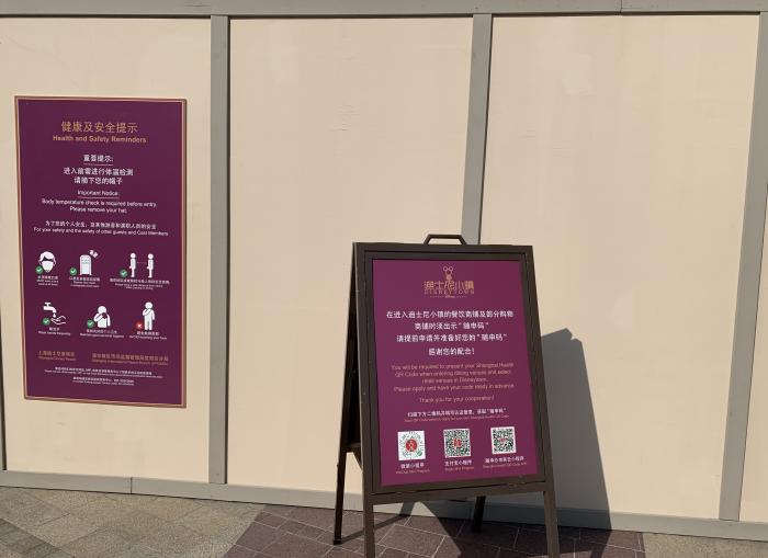 尽管在进停车场已经测过一次体温。但是,在正式进入迪士尼小镇之前,游客需要单人次接受红外线热成像体温检。