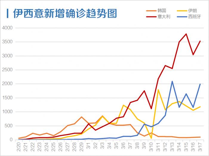 2月20日后,新冠肺炎疫情在全球的传播加快,韩国、意大利、伊朗疫情不断升级。短短25天,韩国的确诊病例从204例增至8413例;伊朗从18例增至16169例,意大利从20例增至31506例。