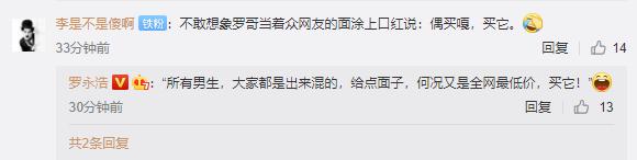 而对于罗永浩的新生意,网友评论五花八门,十分热闹,有调侃无法想象罗永浩涂口红说:OMG!买它!有提醒现在称带货王为时过早的……
