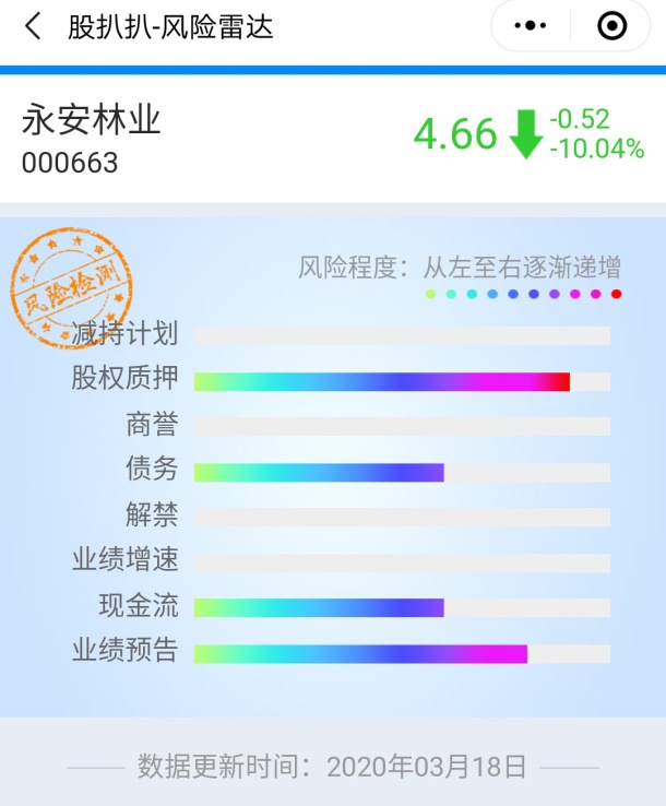 其实,我们也可以用专业的风险排除工具股扒扒小程序来看一下它的风险。比如输入000663,就可以看到永安林业相关信息。