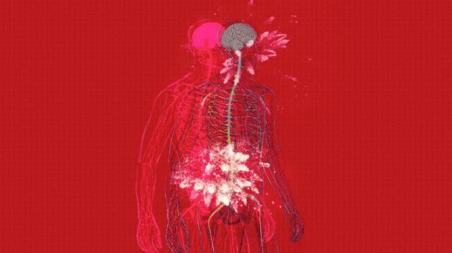 研究表明,大脑会不断地将压力水平传递给肠道。当它受到压力时,大脑通过交感神经纤维告知肠道,而肠道的反应是减少用于消化的能量。持续不断的压力会对肠道资源造成负面的消耗,导致一系列的症状,比如食欲变化、腹胀或腹泻。长此以往,肠壁会变弱,免疫细胞会分泌大量信号物质,降低我们身体和大脑的压力阈值。当我们感觉肠道不适时,可能是因为在压力的诱因消失很久之后,我们还能感觉到压力的影响。